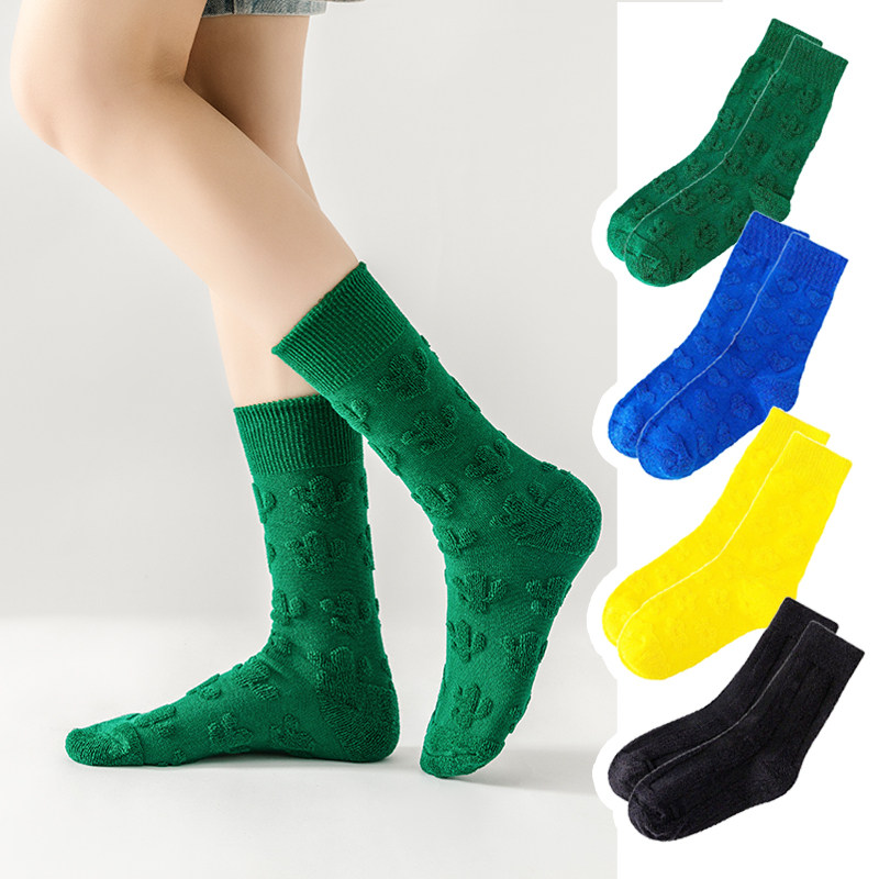 2026秋冬款个性立体浮雕花朵中筒袜韩版时尚舒适百搭外穿棉袜子女