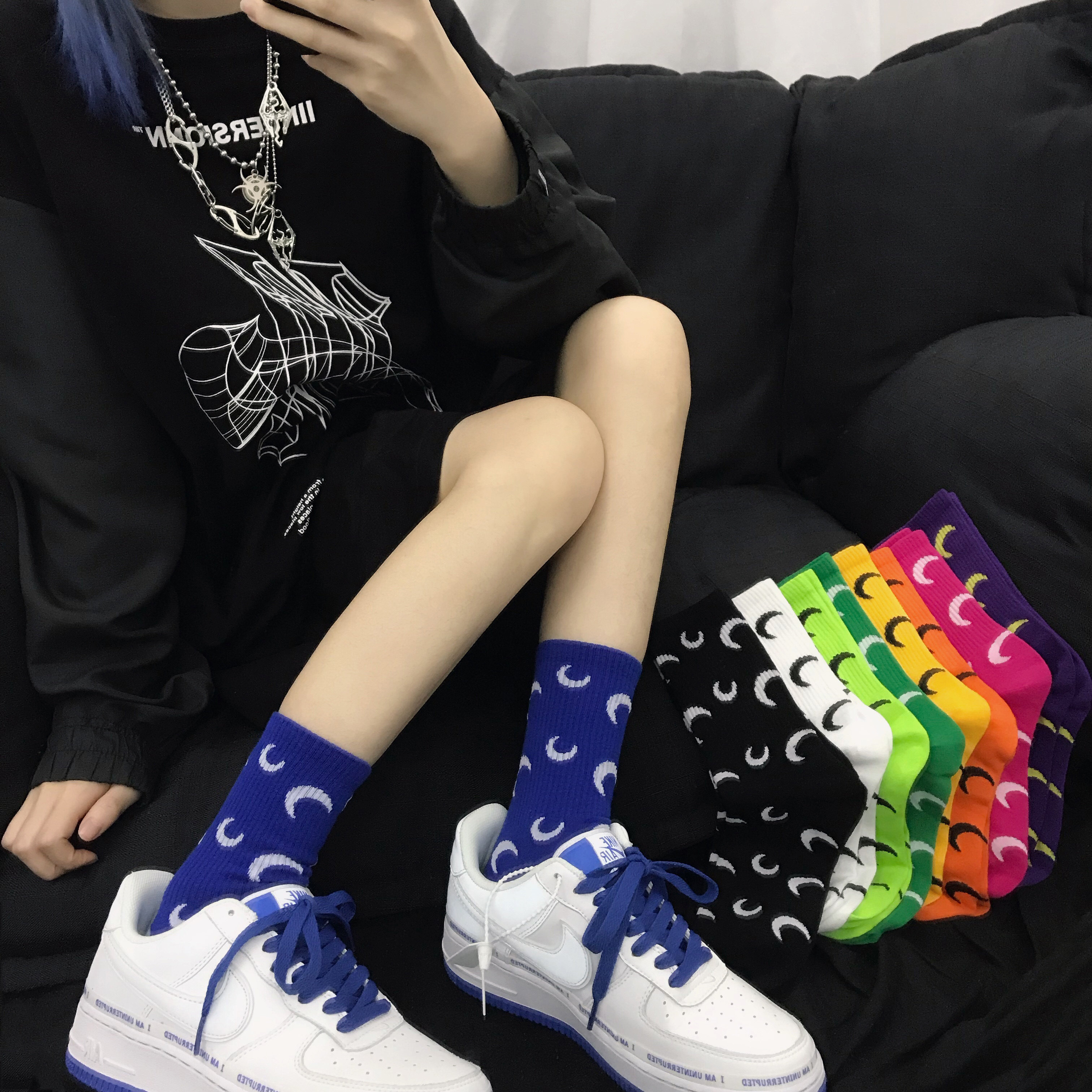 网红袜子女月亮秋冬韩版中筒潮牌百搭日系个性学院风ins超火袜子