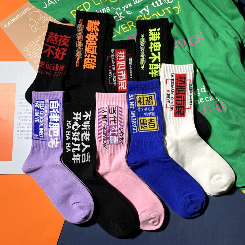 黑色ins个性文字潮袜子男女袜高腰韩版街头高帮秋冬中筒长袜百搭