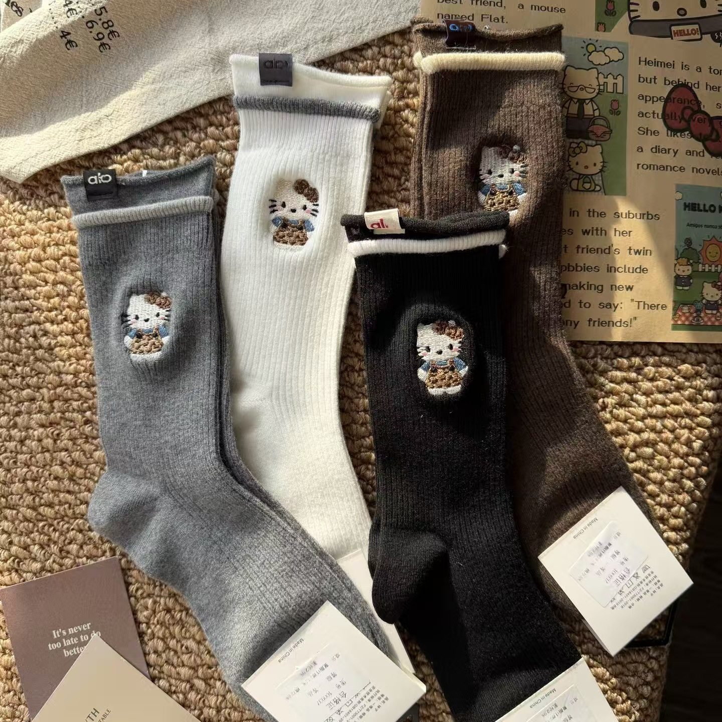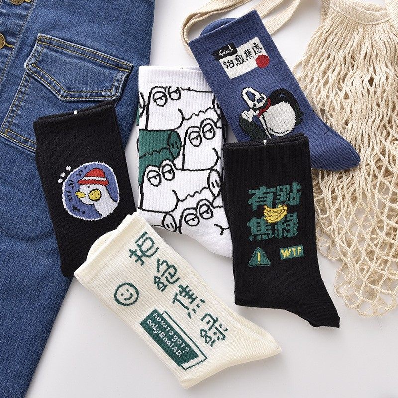 卡通可爱袜子女中筒袜秋冬季厚款棉袜日系韩版ins潮个性百搭少女