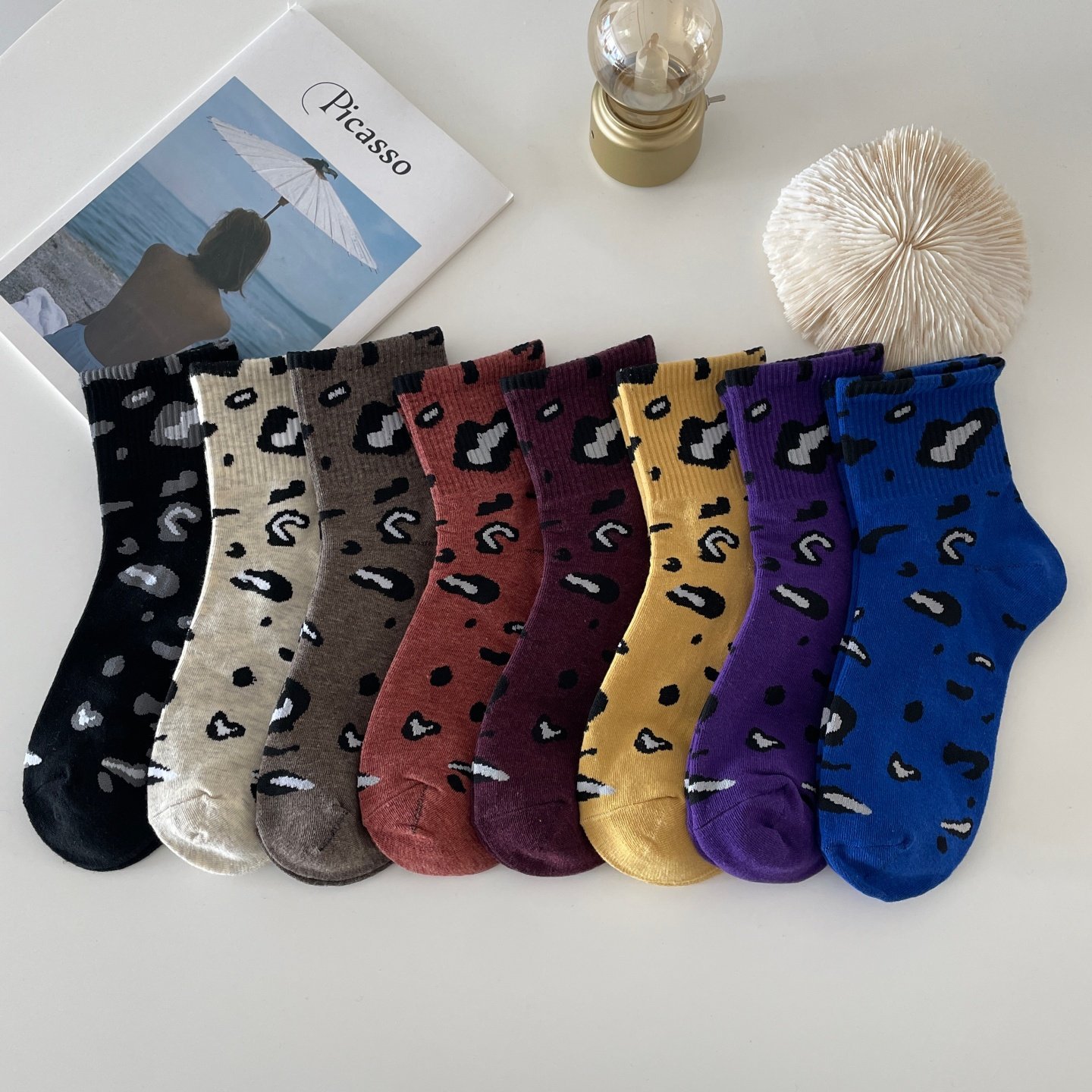 韩版豹纹袜子女中筒袜秋冬网红爆款纯棉复古个性时尚百搭豹点长袜