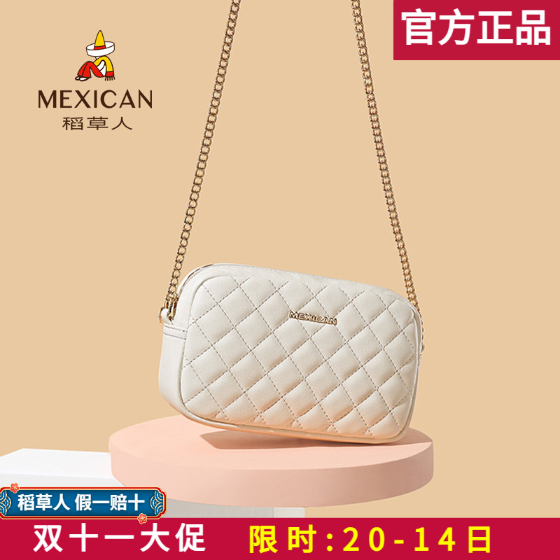 稻草人包包女2025新款小众设计菱格斜挎包链条单肩包流行小包正品