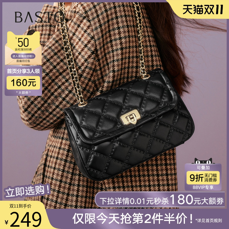 百思图25春秋商场新款链条包菱格小包绗缝包时髦斜挎包女TY068AX6