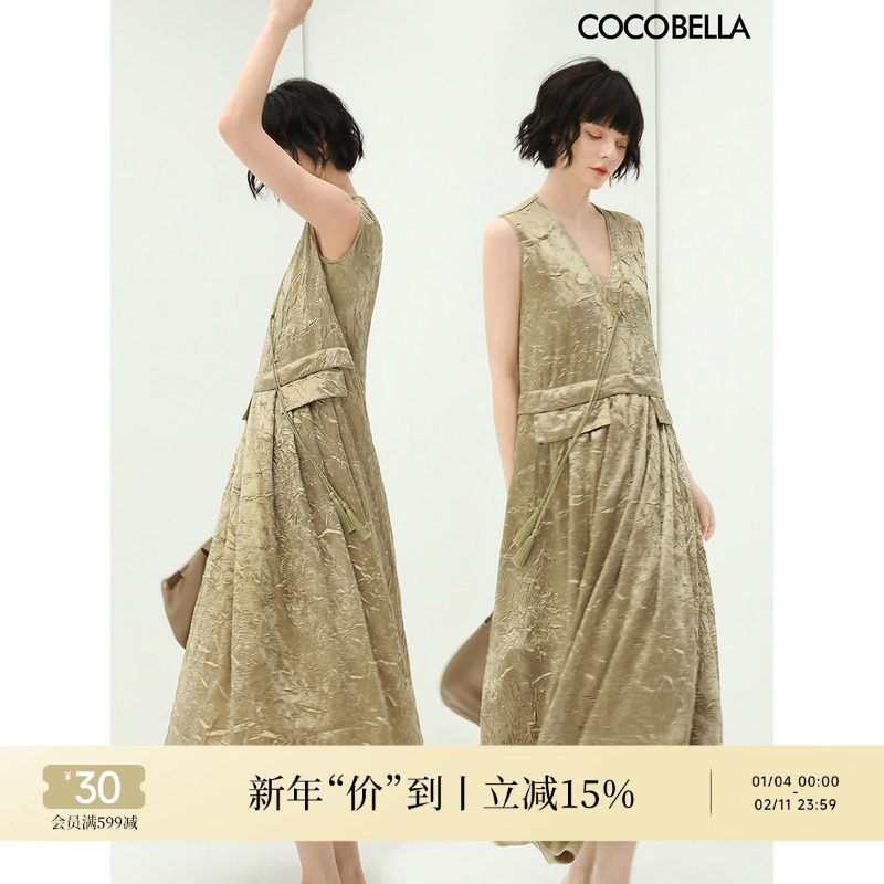 COCOBELLA高奢质感褶皱肌理背心裙流苏光泽千金风连衣裙FR160