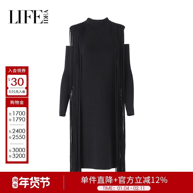 莱芙艾迪儿时髦摩登流苏设计感针织连衣裙女士经典纯色气质连衣裙