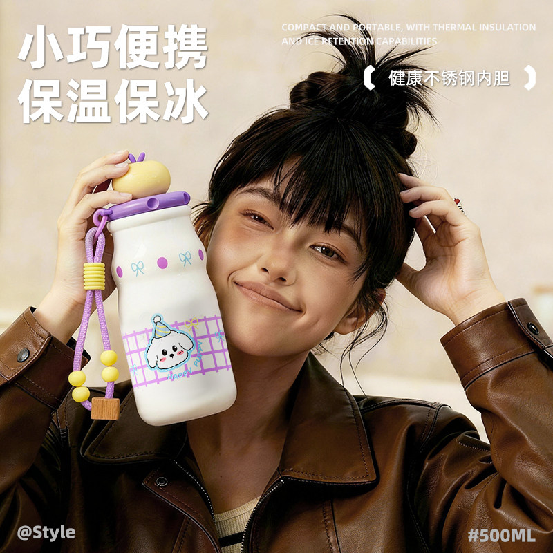 玉桂狗保温杯子女生可爱高颜值吸管水杯2025新款女大容量学生水壶