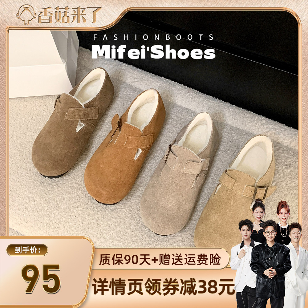 油叽叽~加绒勃肯鞋毛毛鞋女外穿秋冬小土豆穆勒鞋厚底雪地靴半拖