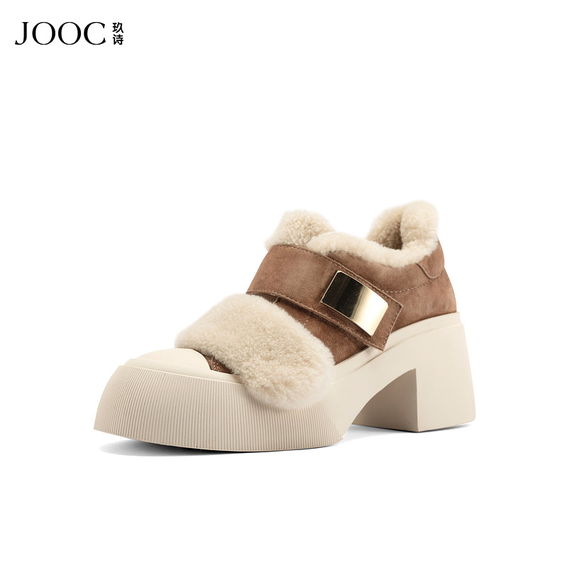 JOOC玖诗保暖毛毛鞋女2025热卖新款百搭休闲魔术贴增高短靴7668