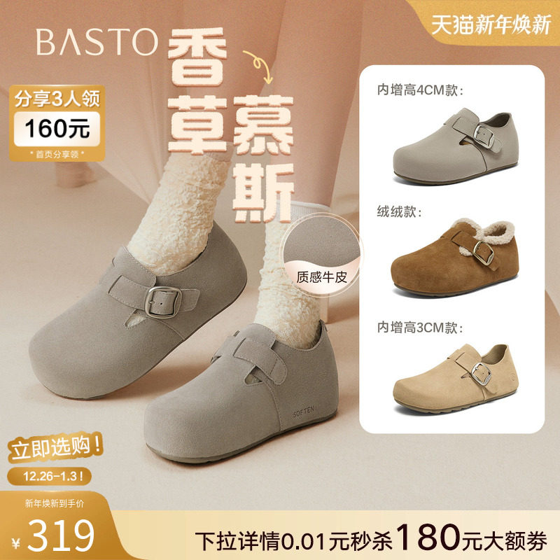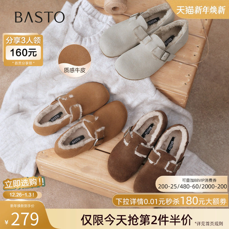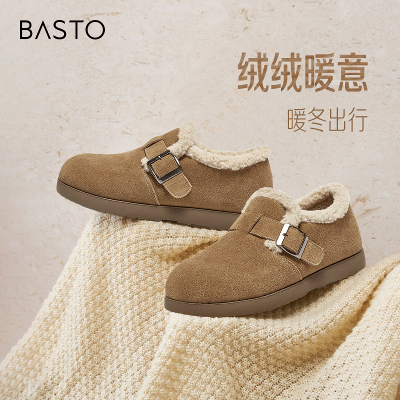 【香草慕斯】百思图26春商场新款真皮厚底加绒勃肯鞋棉鞋毛毛鞋女