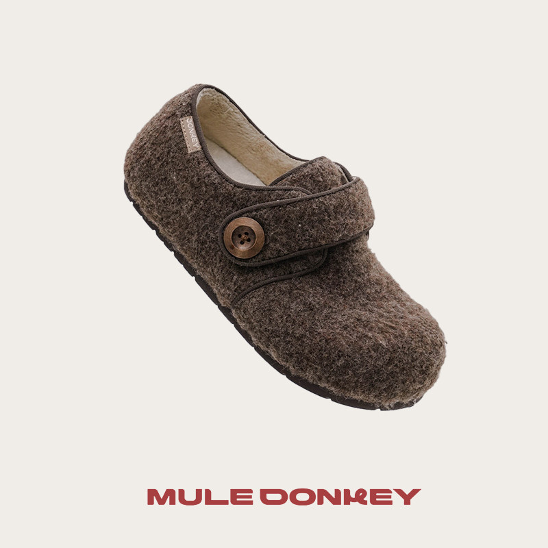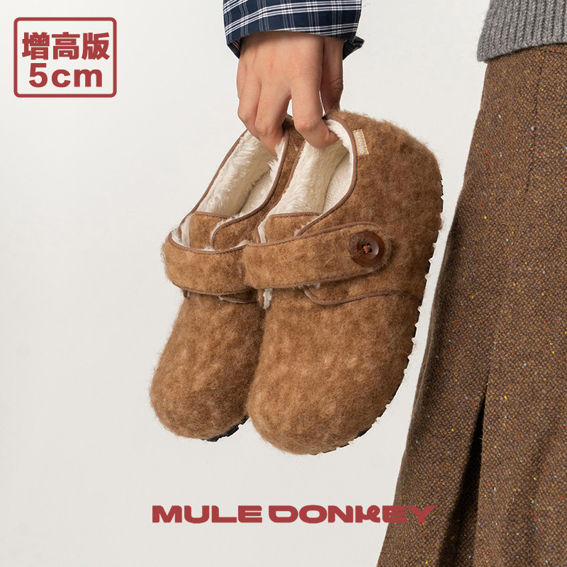 多嘴驴Donkey棕色毛毛鞋女加绒小个子增高棉鞋秋冬慵懒毛绒勃肯鞋