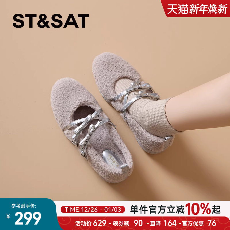 星期六芭蕾风加绒玛丽珍毛毛鞋女鞋2025冬季新款百搭软底舒适单鞋