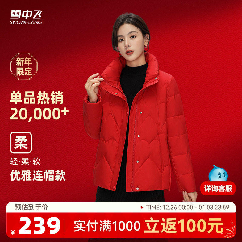 雪中飞2025冬新款短款立领休闲韩版大码显瘦女式妈妈外套羽绒服S