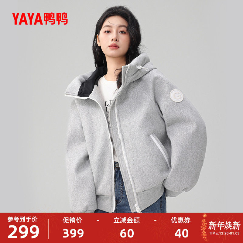 鸭鸭YAYA羽绒服女25冬季新款韩版百搭气质宽松短款连帽90鸭绒外套
