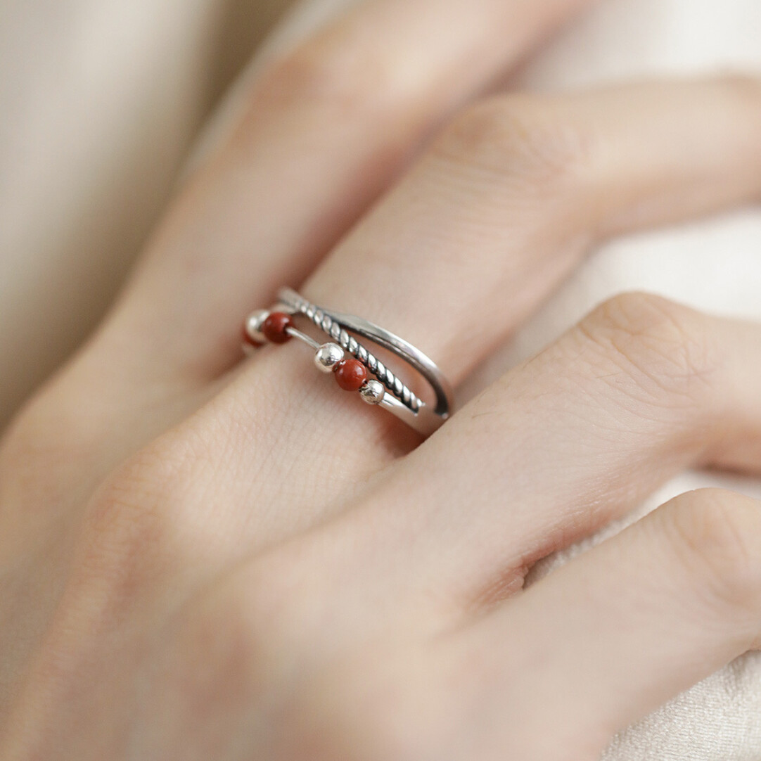 925纯银转运珠戒指女开口素圈指环小众设计几何串珠圆珠关节戒子
