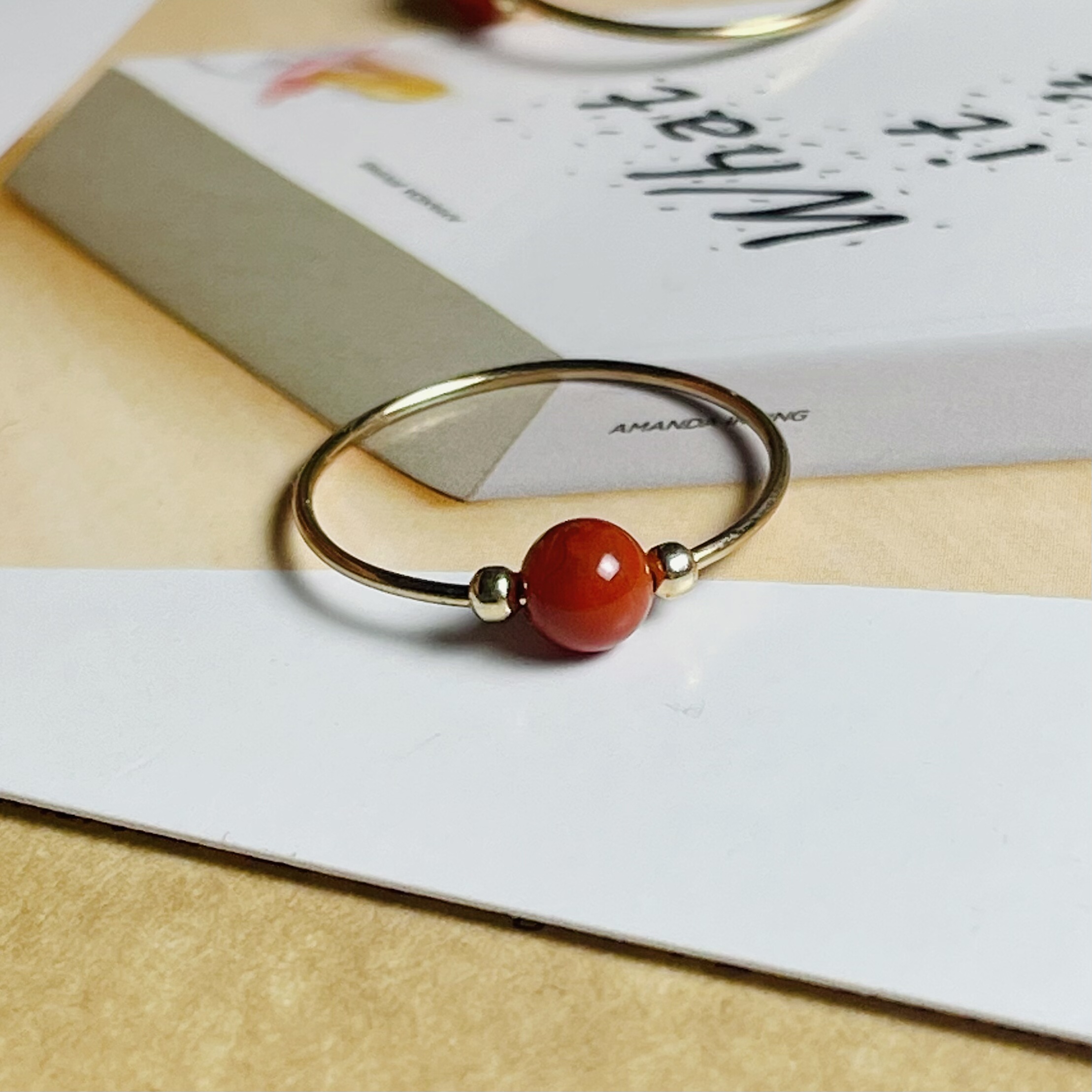 不褪色14k包金南红玛瑙戒指圈本命年红红火火转运珠戒指食指戒