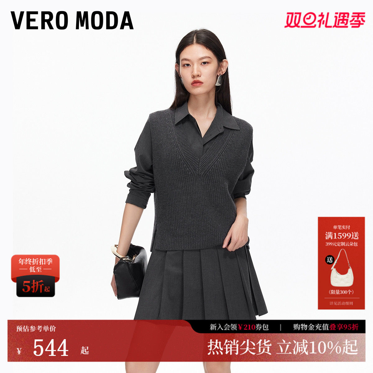 Vero Moda连衣裙2025秋季新款淑女风针织背心学院风套装32537D004