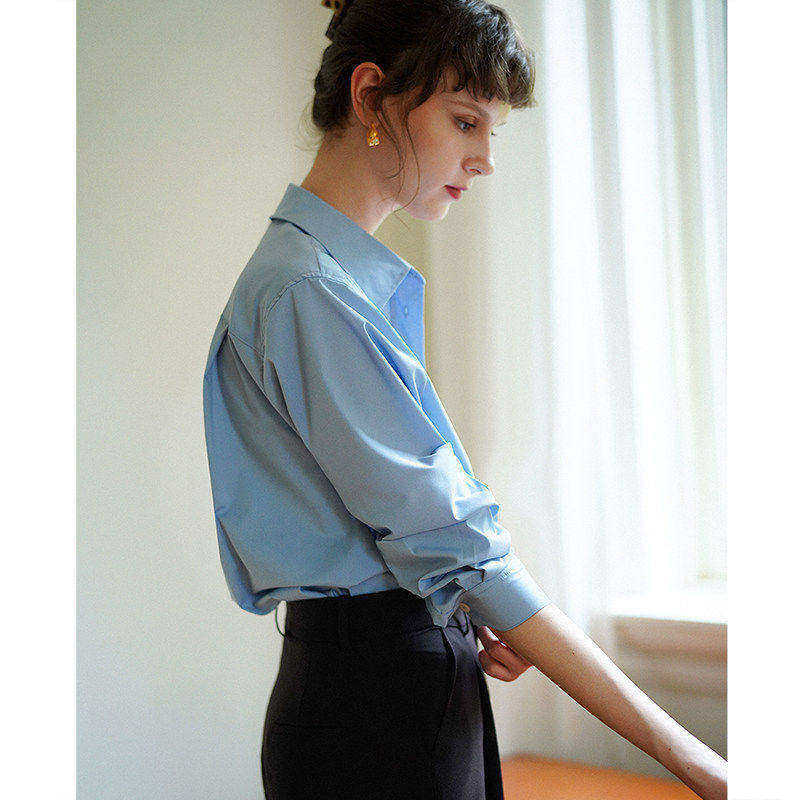NEVA HU【现货7折】宽松休闲长袖衬衫女秋季新款小众韩版百搭衬衣