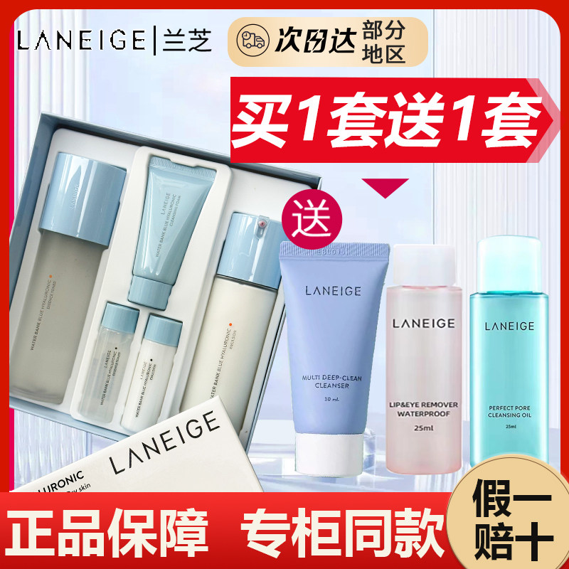 兰芝水衡透润套装2件爽肤水乳液滋润洗面奶隔离霜3件护肤套盒韩国