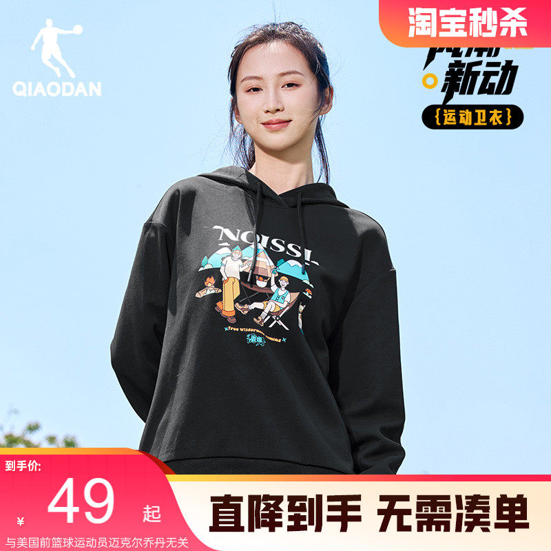 乔丹连帽字母女生卫衣2025冬季新款休闲百搭大图案学生通勤运动