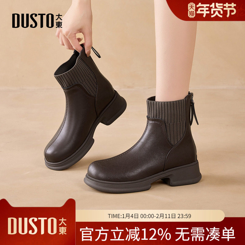 大东厚底短靴女2026新款秋冬季马丁靴超火切尔西靴小个子增高靴子