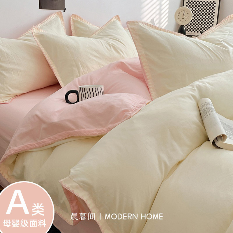 A类加厚母婴级夏季纯色水洗棉ins风四件套学生宿舍三件套被套