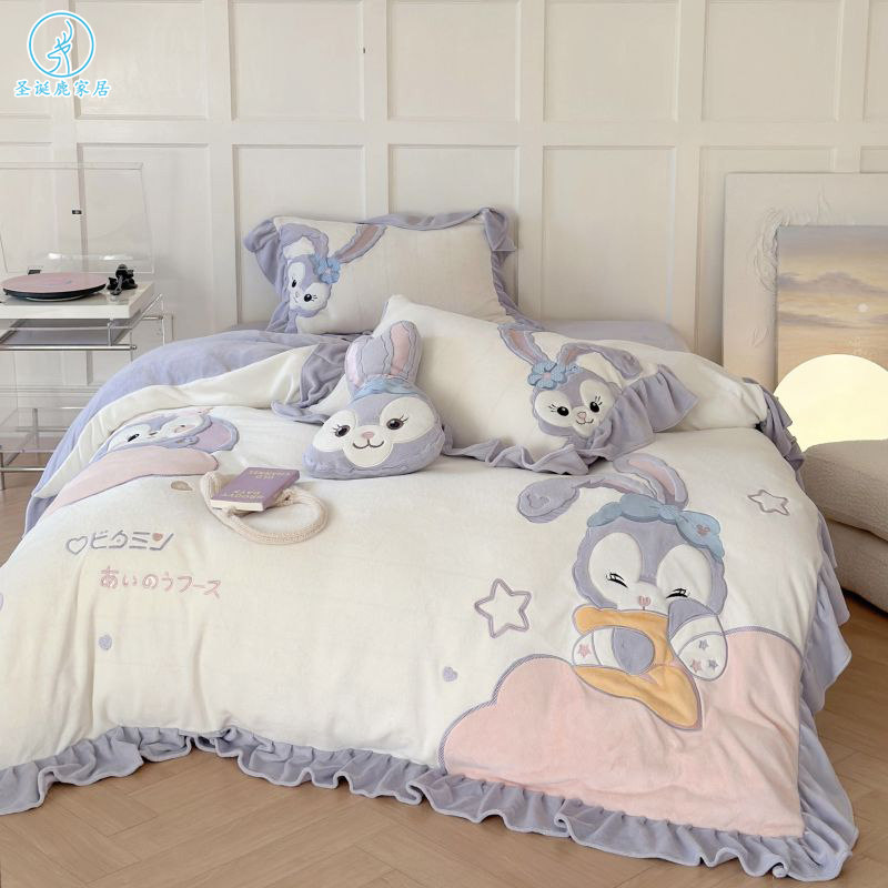 卡通儿童少女心冬季加厚牛奶绒四件套星黛兔公主风加绒被套三件套