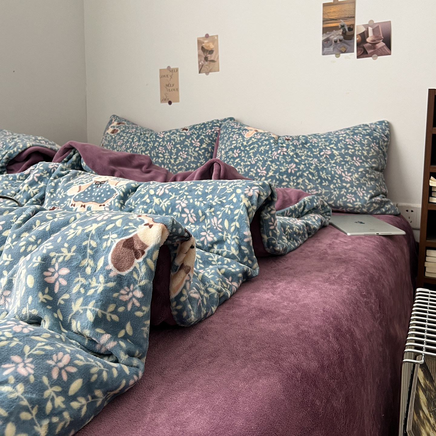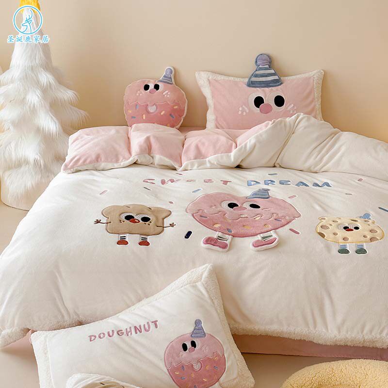 小清新冬季A类加厚牛奶绒四件套卡通宿舍加绒珊瑚绒三件套单被套