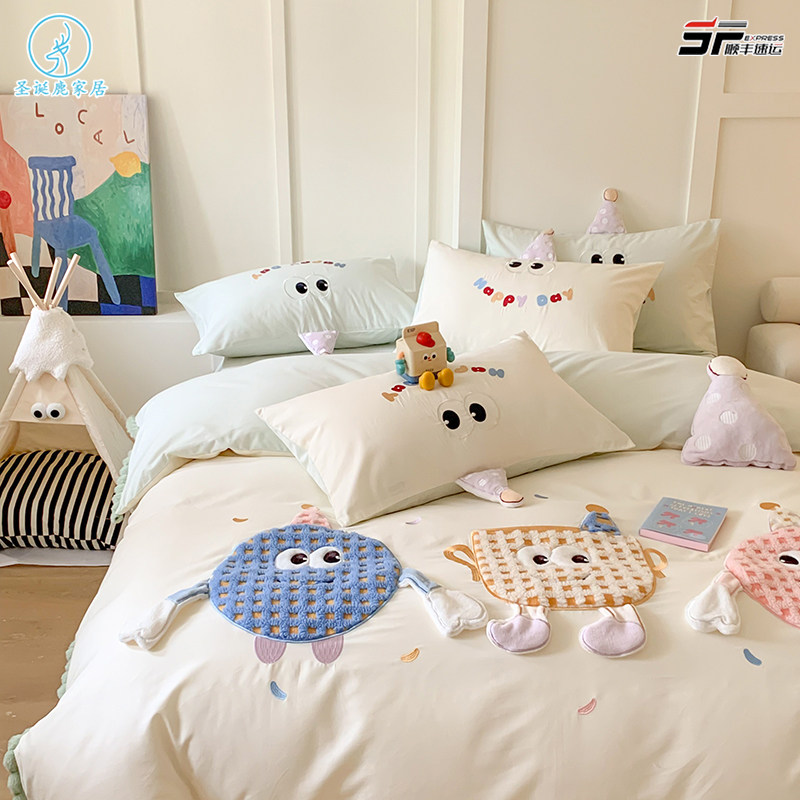 母婴级A类正品床上四件套ins可裸睡水洗棉床单被套被罩宿舍三件套