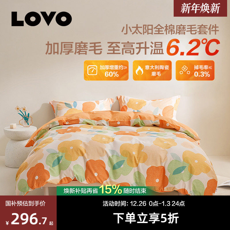 LOVO乐蜗磨毛加厚四件套全棉纯棉被套三件套床单秋冬季保暖床品