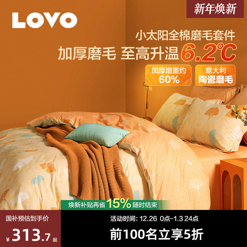 罗莱家纺LOVO乐蜗全棉加厚磨毛四件套纯棉保暖被套床单学生三件套