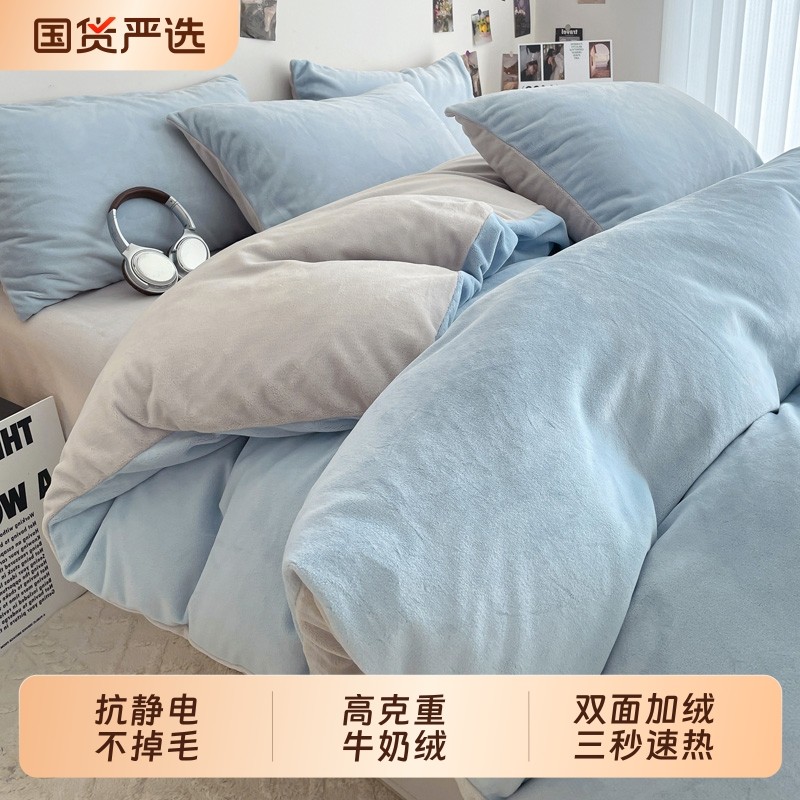 A类母婴级保暖牛奶绒四件套加厚双面绒被罩牛奶绒被套单件三件套