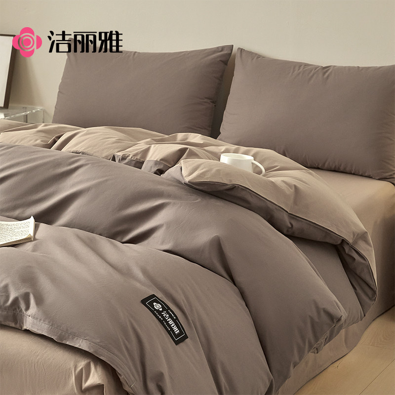 富安娜家纺全棉100纯棉床上四件套床单被套三件套中性简约风床品