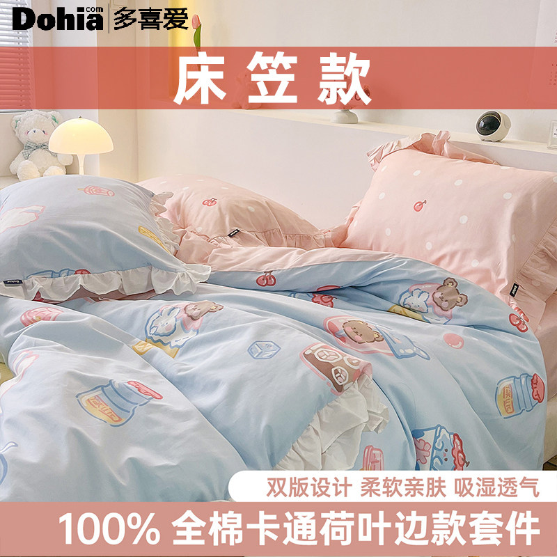 多喜爱床笠款全棉四件套萌趣卡通套件家用宿舍纯棉床单被套三件套