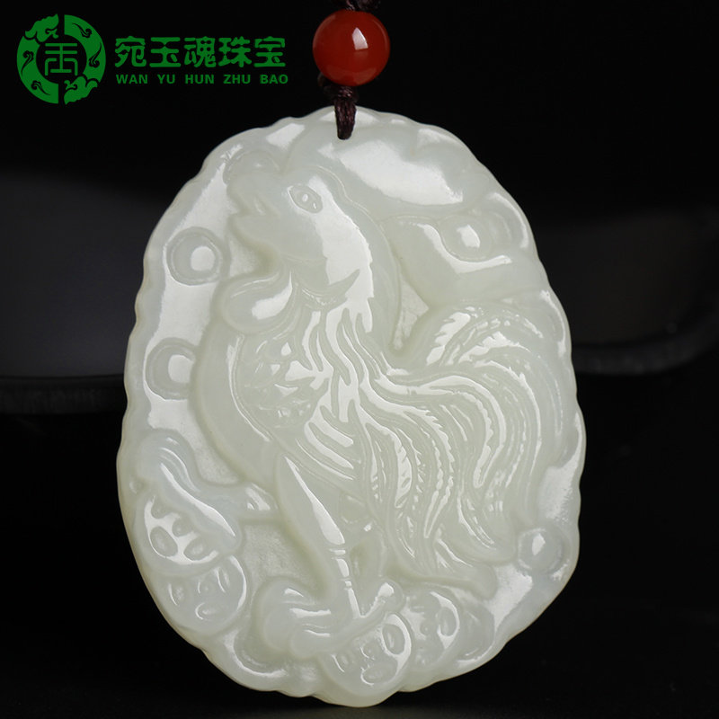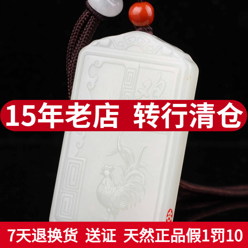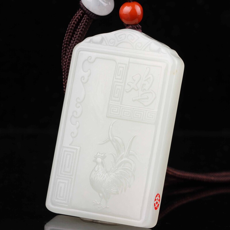 天然新疆和田玉籽料生肖鸡平安牌吊坠精雕玉石大公鸡金鸡项链挂件