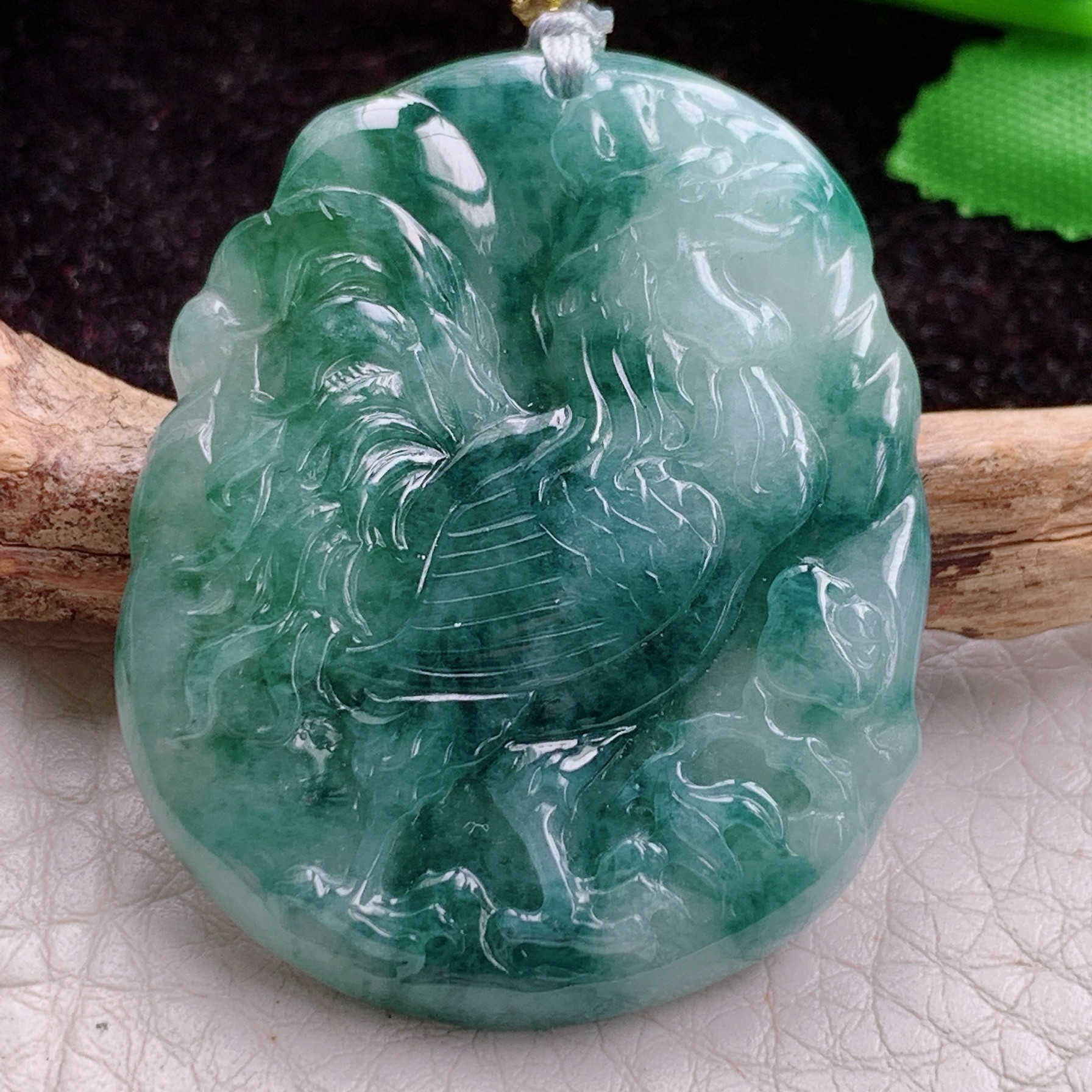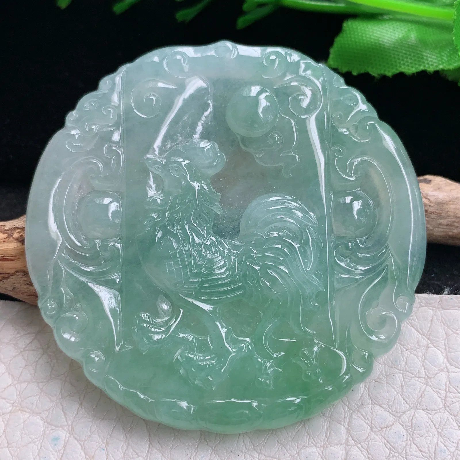 Ktj实拍50*42.6*6.3缅甸翡翠精雕冰透绿生肖金鸡吊坠 生肖守护神