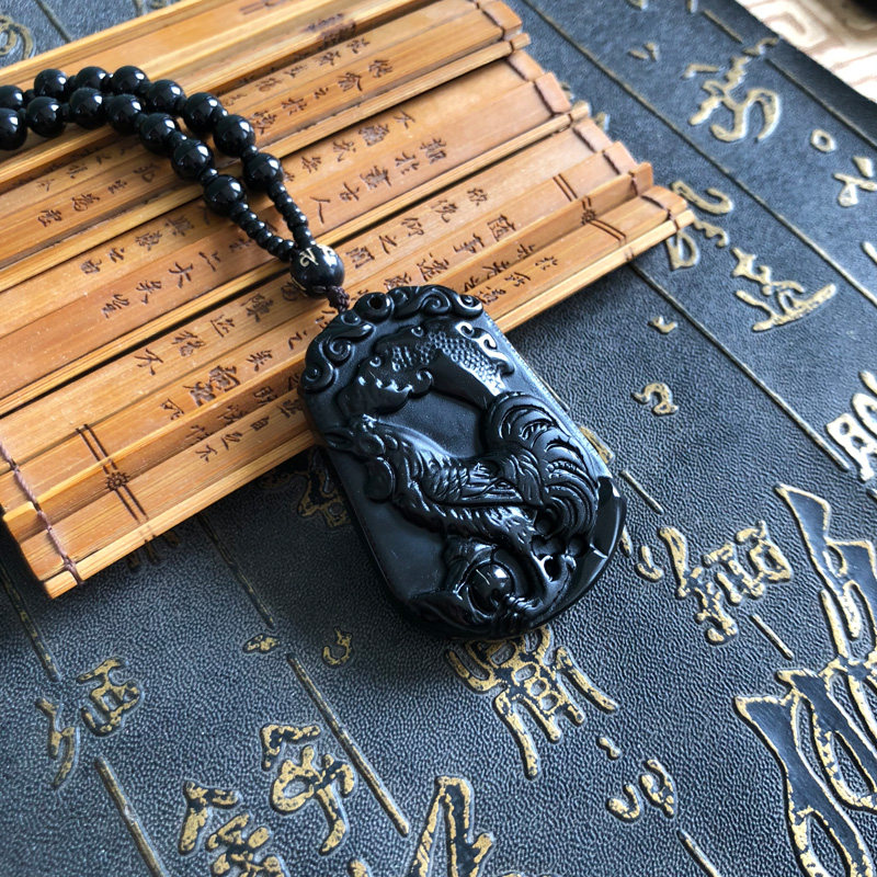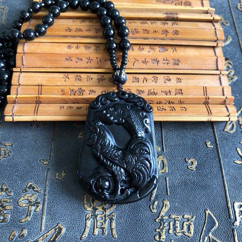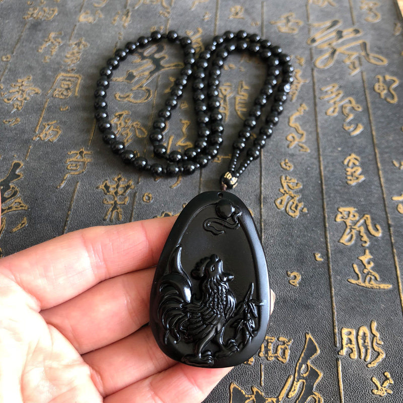 大公鸡吊坠天然黑曜石金鸡报晓玉佩项链情侣款生肖挂件男女送证书