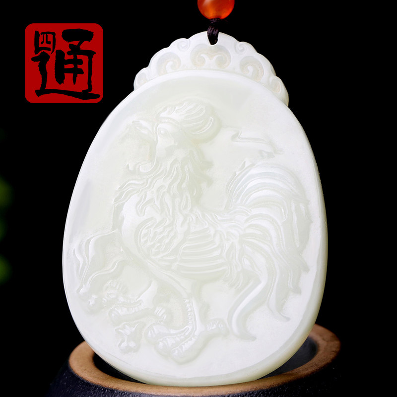 四通新疆和田玉生肖挂件金鸡报晓玉石鸡玉佩天然白玉吊坠一鸣惊人