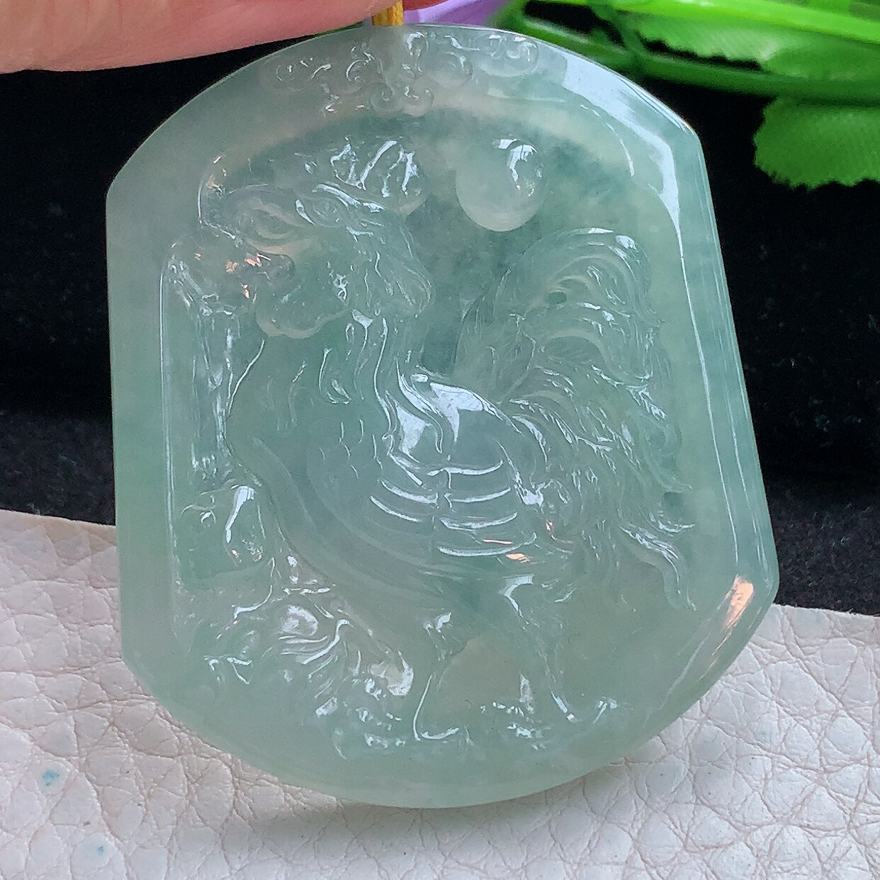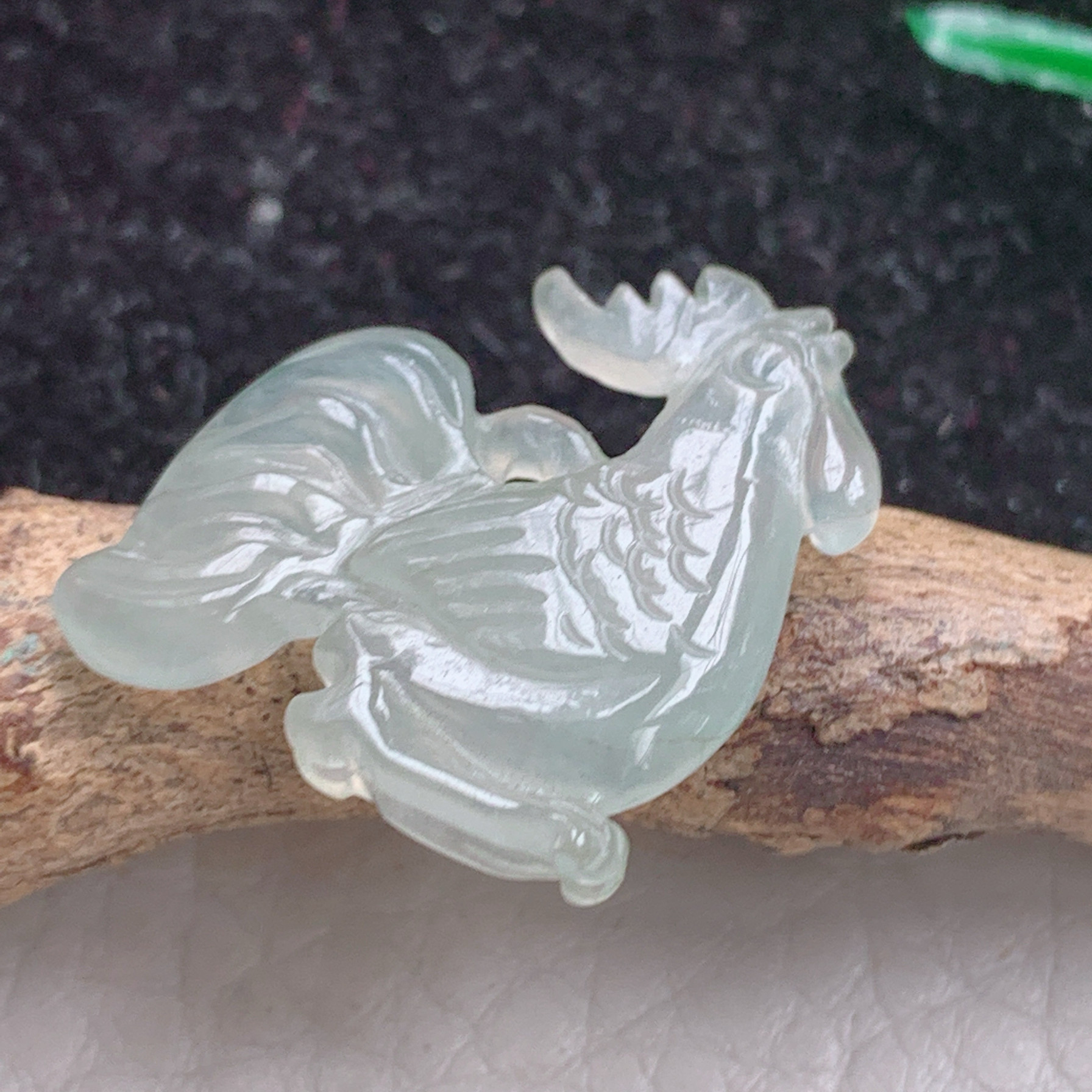 t实拍 缅翡翠A货精雕冰飘花金鸡独立生肖鸡玉吊坠40.3*30.8*6.2mm