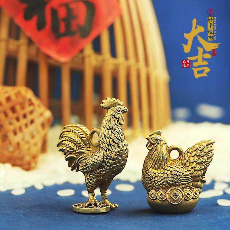 复古十二生肖公鸡铜鸡钥匙扣挂件汽车挂饰男纯铜金鸡手机吊坠女款