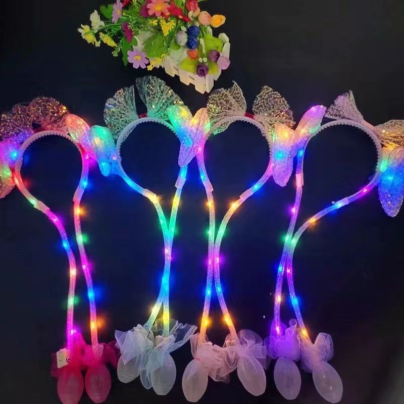 发光羽毛兔耳朵发箍儿童可爱头饰节日演唱会道具夜市摆地摊小商品