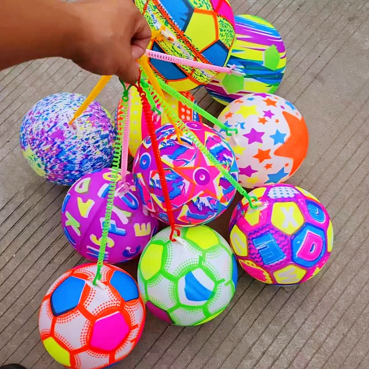儿童七彩带绳拍拍球链子弹力充气卡通足球西瓜球礼品摆地摊小商品