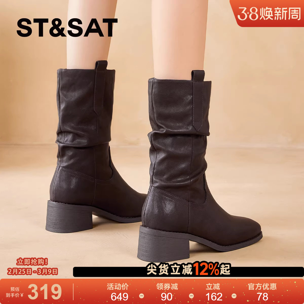 - 粗跟单靴女