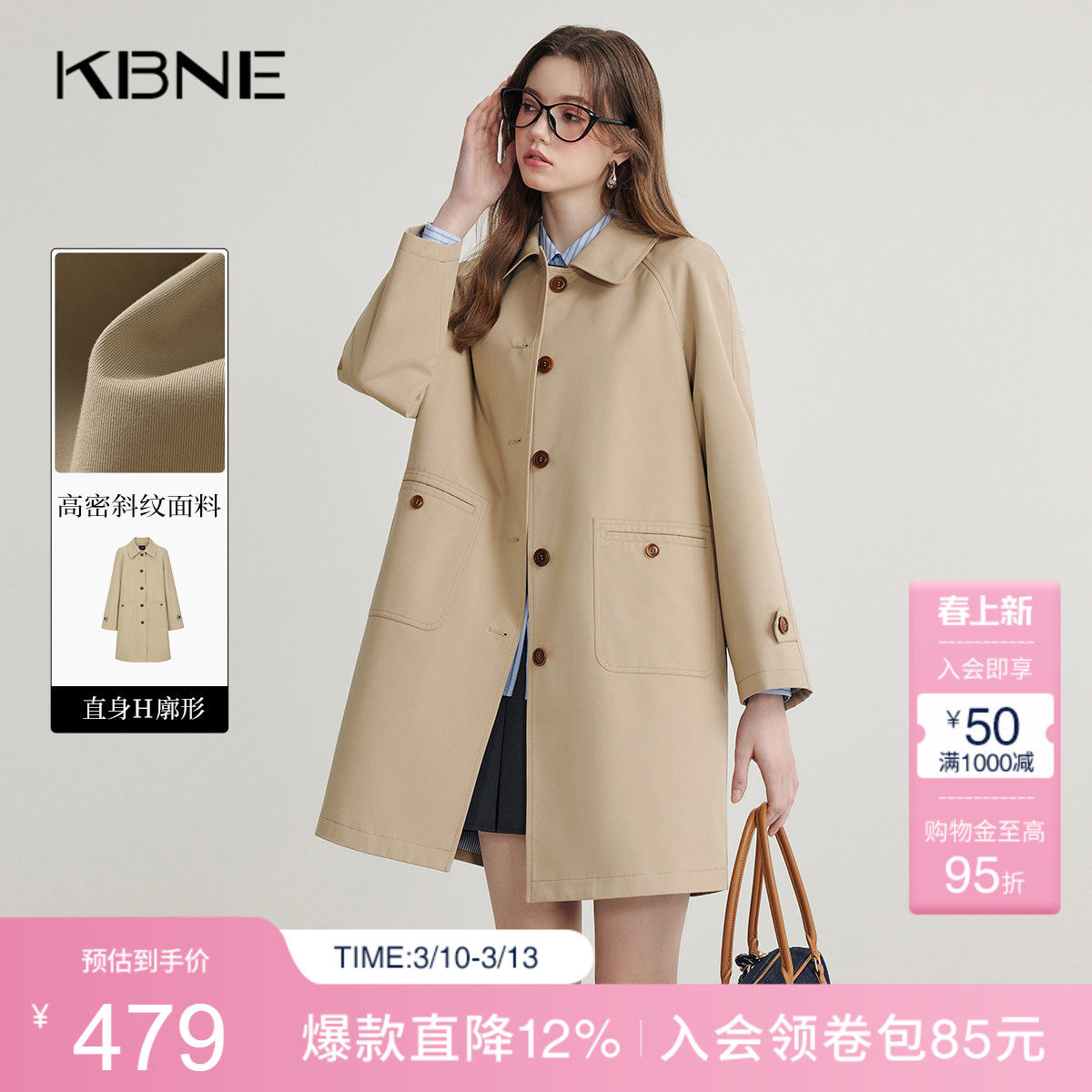 KBNE巴恩风卡其色风衣女小个子2026春季新款气质英伦宽松中长外套