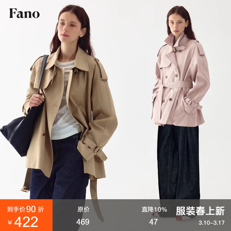 范洛Fano 复古经典廓形双排扣翻领风衣女2026系带气质中长款外套