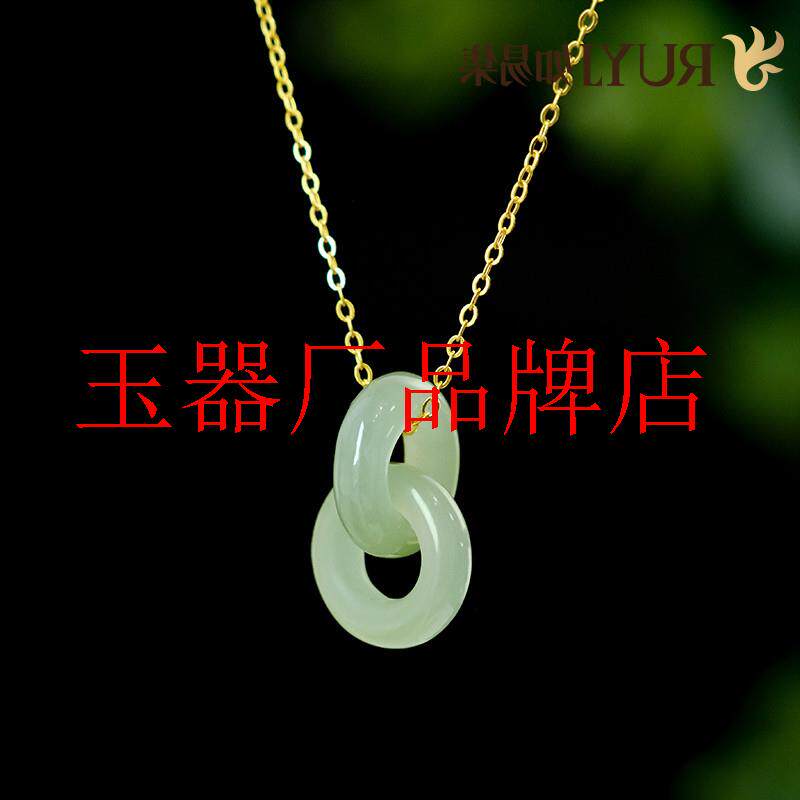环环相扣项链银饰平安扣和田玉吊坠高端白玉锁骨链女简约气质饰品