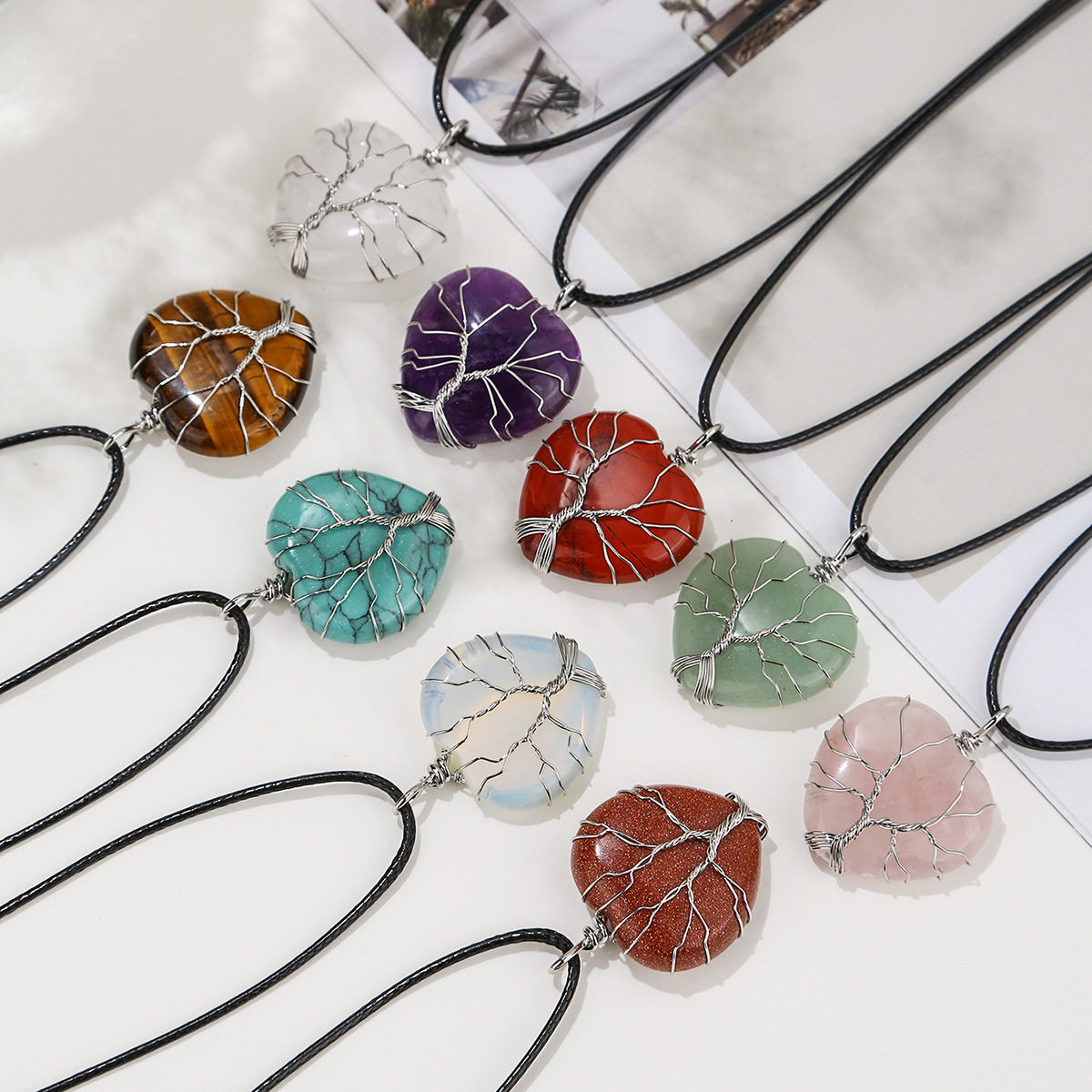 春夏生命树爱心紫水晶锁骨链女简约蓝松颈链精致虎眼石项链送闺蜜