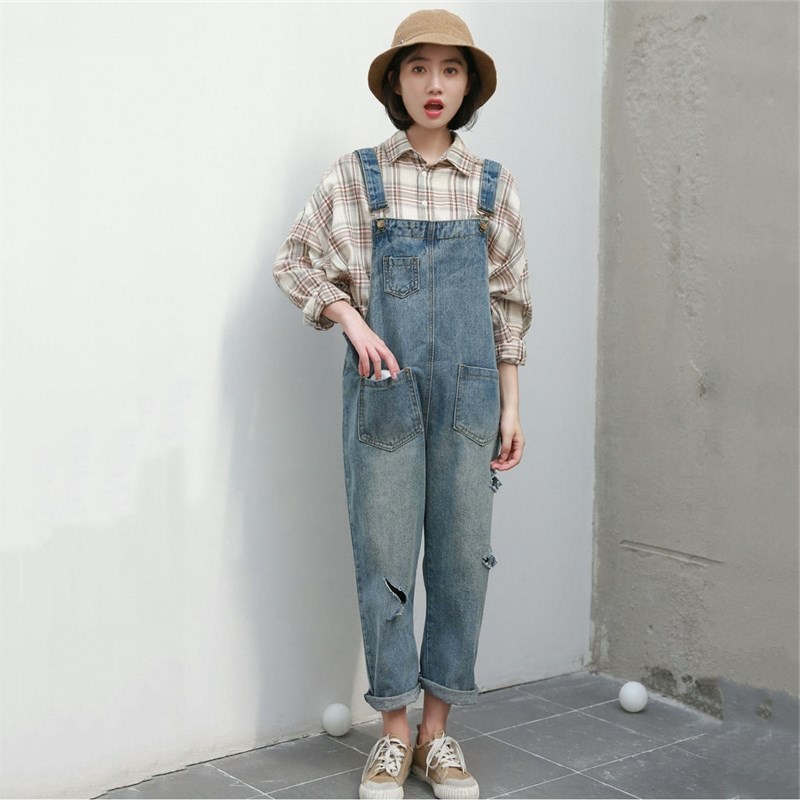 牛仔背带裤女宽松显瘦吊带韩版学生长裤春秋新款小脚裤连体裤百搭