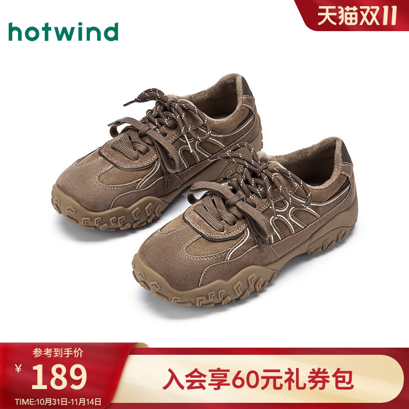 热风复古休闲鞋女2025年冬季新款百搭内增高德训鞋轻便运动女鞋子