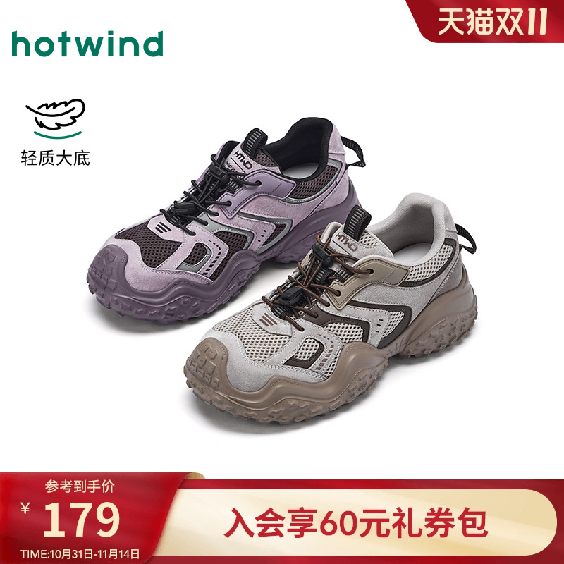 热风运动休闲鞋女2025年冬季新款撞色百搭厚底鞋子小个子户外女鞋