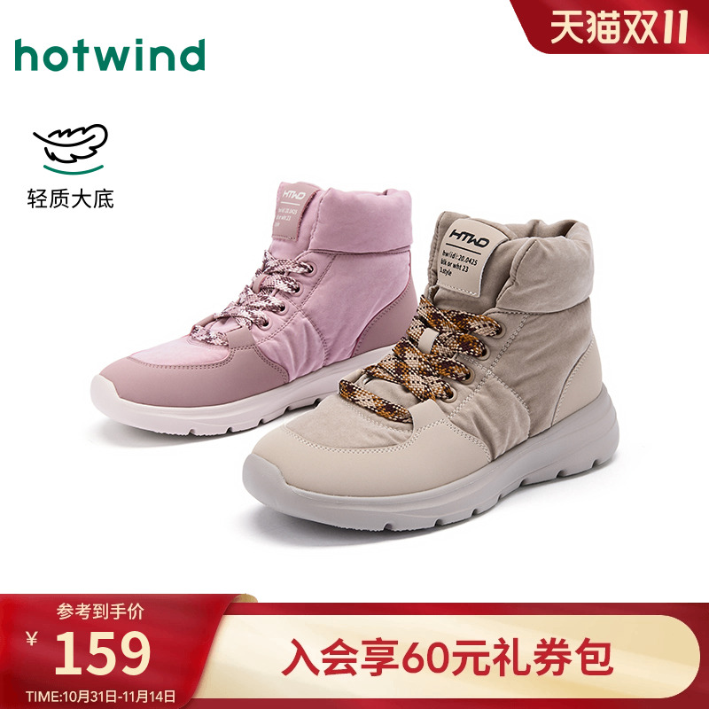 热风厚底休闲鞋女款2025年冬季新款百搭运动女鞋户外杏色跑步鞋子